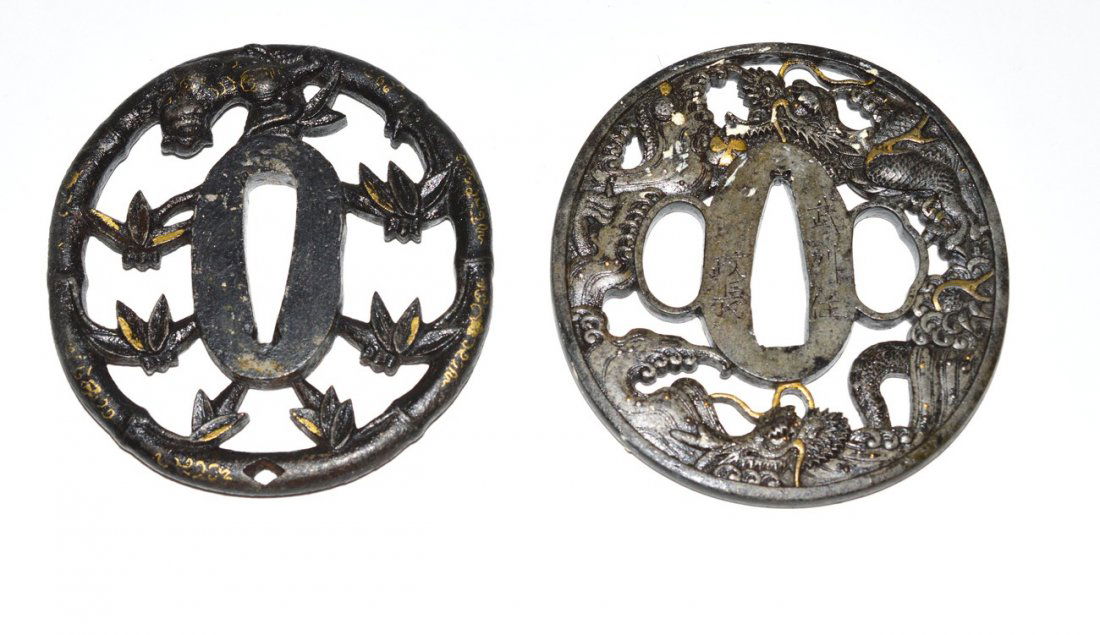 Pair of Japanese Katana Tsubas7 hrs LeftAntique Japanese Samurai Sword Fittings7 hrs Left(3) JAPANESE TSUBA SAMURAI SWORD GUARDSFeb 21, 2026(3) JAPANESE TSUBA SAMURAI SWORD GUARDSFeb 21, 2026(4) JAPANESE TSUBA SAMURAI SWORD GUARDSFeb 21, 2026Antique Japanese Iron Tsuba Sword Guards (2)32wwww7 hrs Left(4) JAPANESE TSUBA SAMURAI SWORD GUARDSFeb 21, 2026(4) JAPANESE TSUBA SAMURAI SWORD GUARDS IN BOXESFeb 21, 2026(4) JAPANESE TSUBA SAMURAI SWORD GUARDSFeb 21, 2026(3) JAPANESE TSUBA SAMURAI SWORD GUARDS - ANIMALSFeb 21, 2026(4) JAPANESE TSUBA SAMURAI SWORD GUARDSFeb 21, 2026(4) JAPANESE BAMBOO & FLORAL TSUBA SWORD GUARDSFeb 21, 2026(4) JAPANESE TSUBA SAMURAI SWORD GUARDS -GEOMETRICFeb 21, 2026(4) JAPANESE TSUBA SAMURAI SWORD GUARDS -GEOMETRICFeb 21, 2026JAPANESE TSUBA WITH SAMURAIFeb 21, 2026‡ Three iron tsuba, Edo period4 days Left
