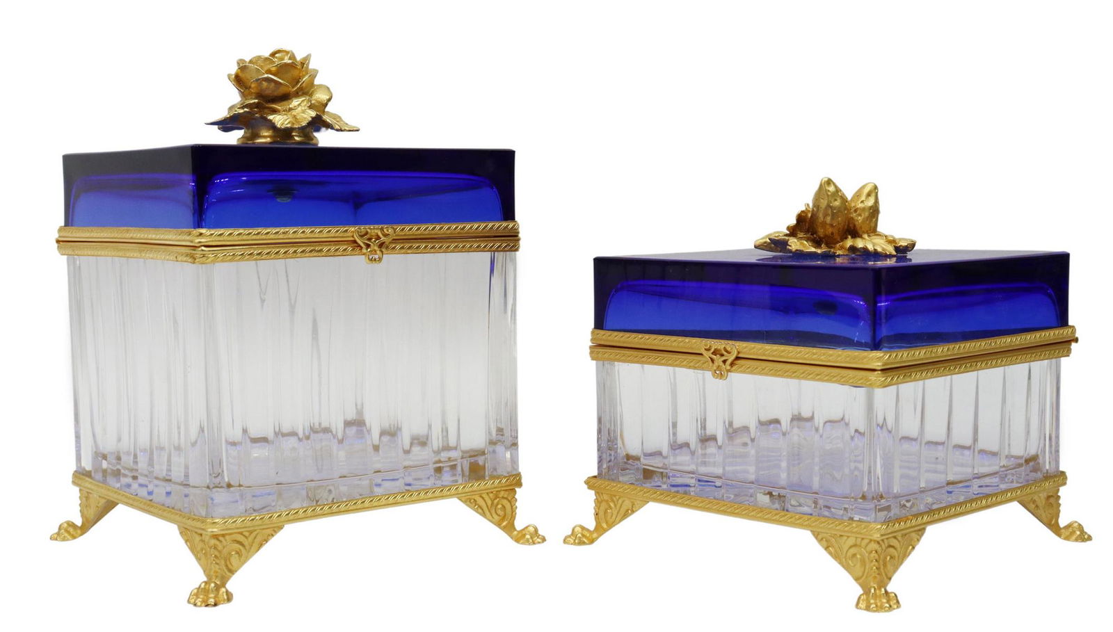 (2) ORMOLU-MOUNTED GLASS DRESSER BOXES