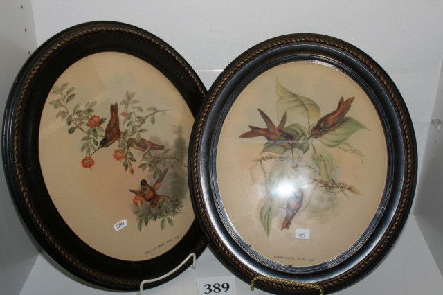 2 Oval Frames with bird prints