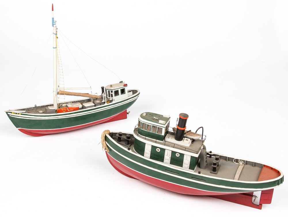2 Painted Wood Scale Model Boats