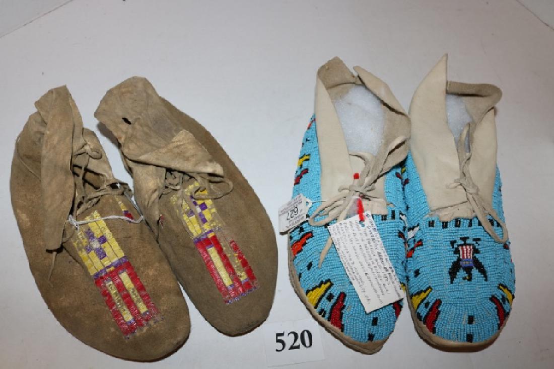 Sold2 Pairs of Indian Moccasins - A Rawhide Soled "Santee"2 Pairs of Indian Moccasins - A Rawhide Soled "Santee" Sioux Pair of a Floral Beaded Pair from the North West Plateau RegionSee Sold Price