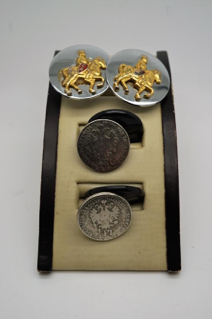 Sold2-PAIRS OF SILVER TONED MEN'S CUFF LINKS(1)SWANK HORSE WITH LIGHT PINK ENAMEL BAKCGROUND (1)SWANK CROWNSee Sold Price