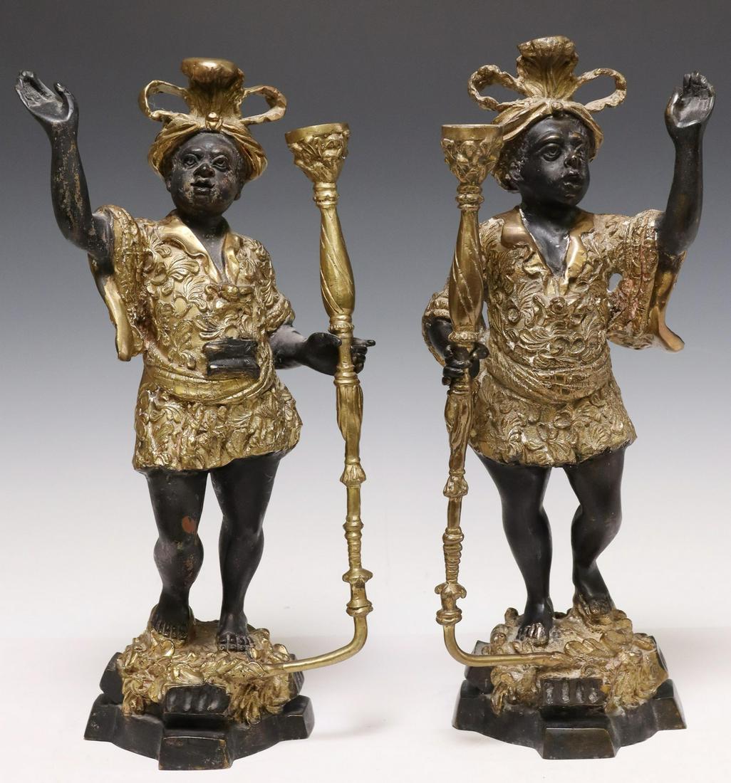 (2) PATINATED BRONZE FIGURAL CANDLE HOLDERS