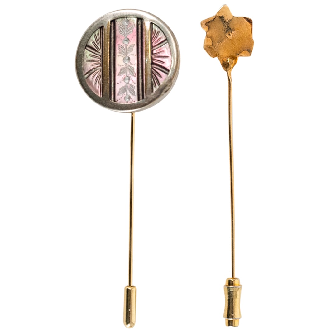 A lot of three antique 18 kt gold stick pins3 days LeftVintage assorted goldtone metal butterfly & earth crescent moon & stars stick pins. Lot of 2.Mar 01, 2026(2) Early 14K Yellow Gold StickpinsFeb 28, 2026Two Antique Gold Tone Stick Pins including an Art Nouveau Gibson Girl GOLDMar 12, 202614kt Yellow Gold 0.13ctw Diamond EarringsMar 02, 202614kt Rose Gold 0.13ctw Diamond EarringsMar 02, 202614K Yellow Gold Setting with Mother of Pearl Inlay Earrings2 days LeftA group of brooches and stick pins,4 days Left18K YELLOW GOLD ALLOY PIN BROOCH PEARLMar 07, 202614K Yellow Gold Setting with Mother of Pearl Inlay Earrings5 days Left(3) 14K Gold Stick Pins (Carved Jade, Amber, Dia.)Feb 28, 2026NEW 14K TRICOLOR GOLD HEART DANGLING CZ CUFF EARRINGSMar 15, 2026TWO 14K GOLD GEM-SET BROOCHES2 SETS 14K GOLD & GEMSTONE TUXEDO BUTTONS 8.9g4 days LeftANTIQUE PINK CAMEO PIN BROOCH 14K YELLOW GOLDFeb 28, 202618K YELLOW GOLD ALLOY PIN BROOCH MABE PEARLMar 08, 2026