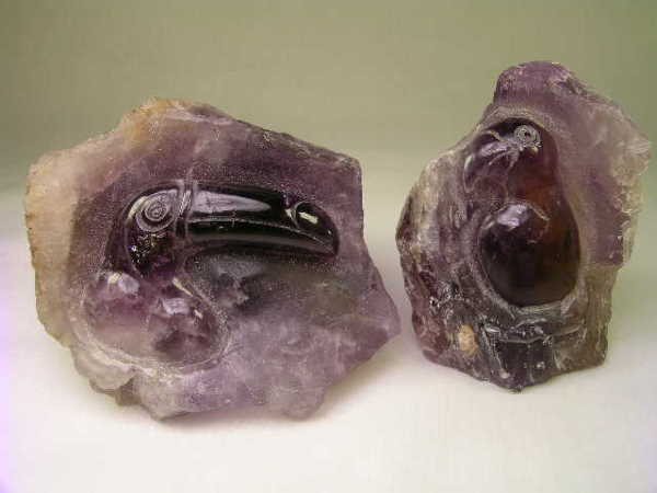 2 PC AMETHYST GEODE CARVED TOUCAN BIRD
