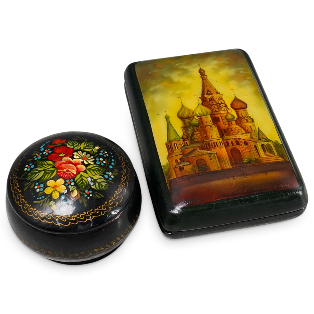 (2 Pc) Antique Russian Lacquer Boxes W/ Documentation