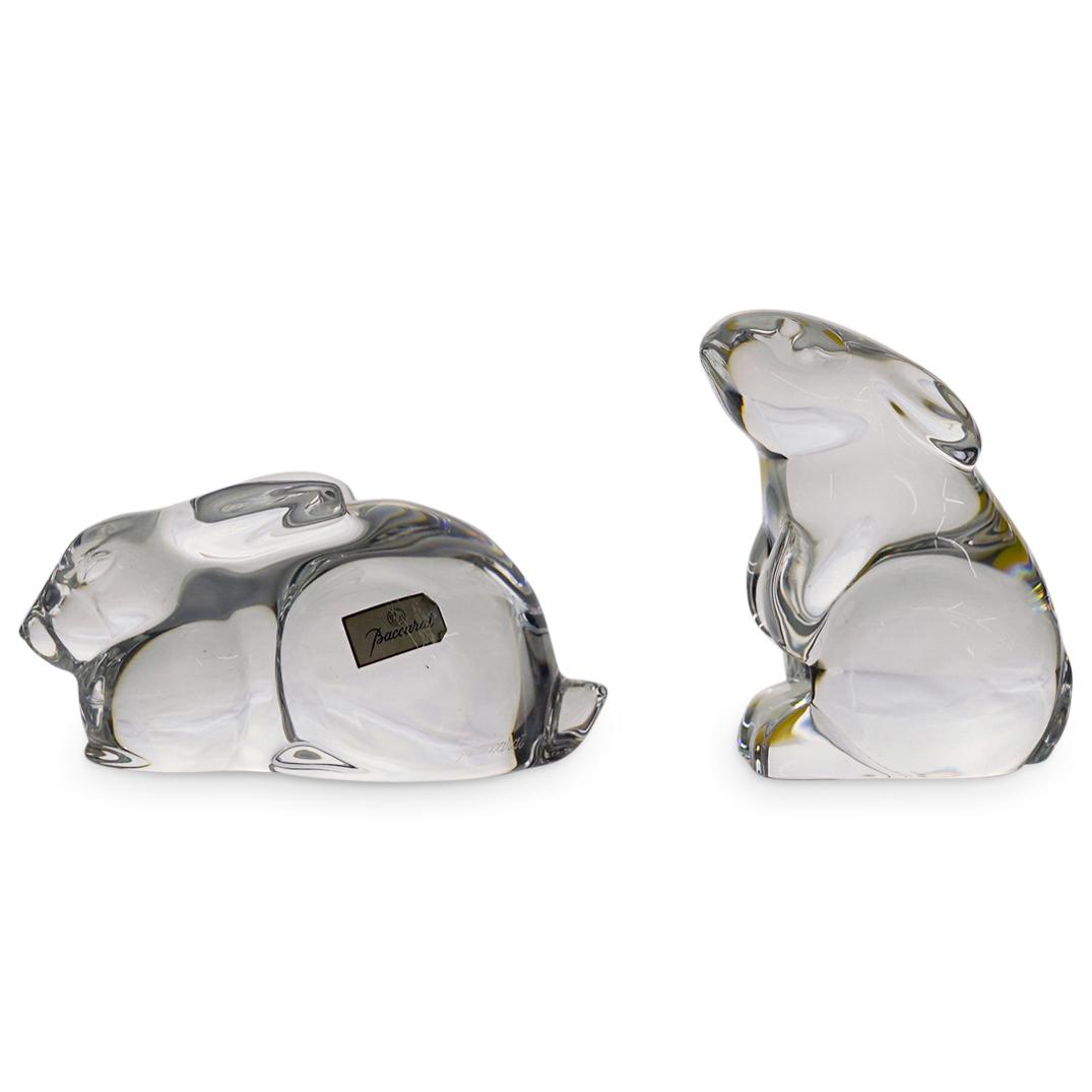 (2 Pc) Baccarat Crystal Rabbit Figurines