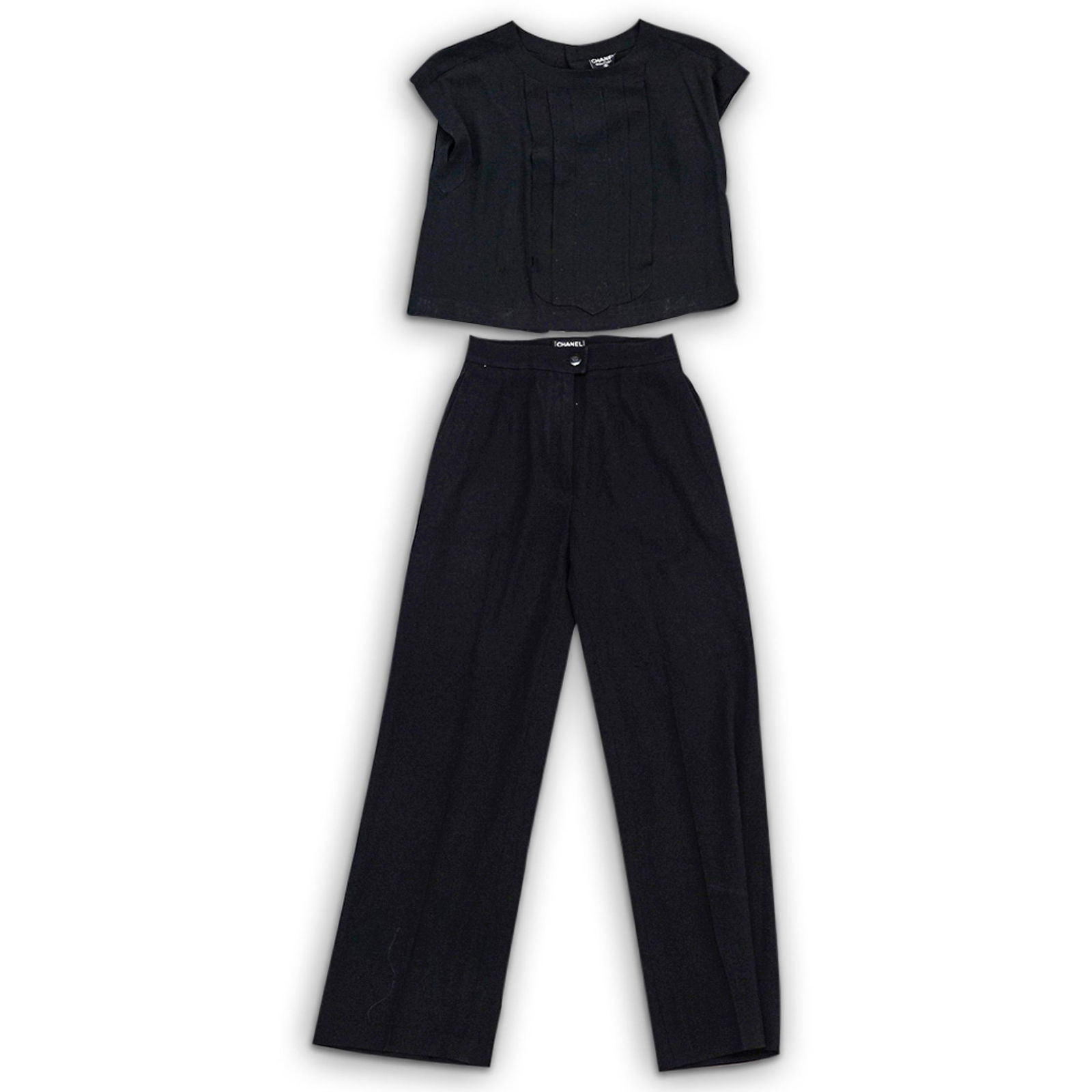 (2 Pc) Chanel Black Blouse & Pants Ensemble