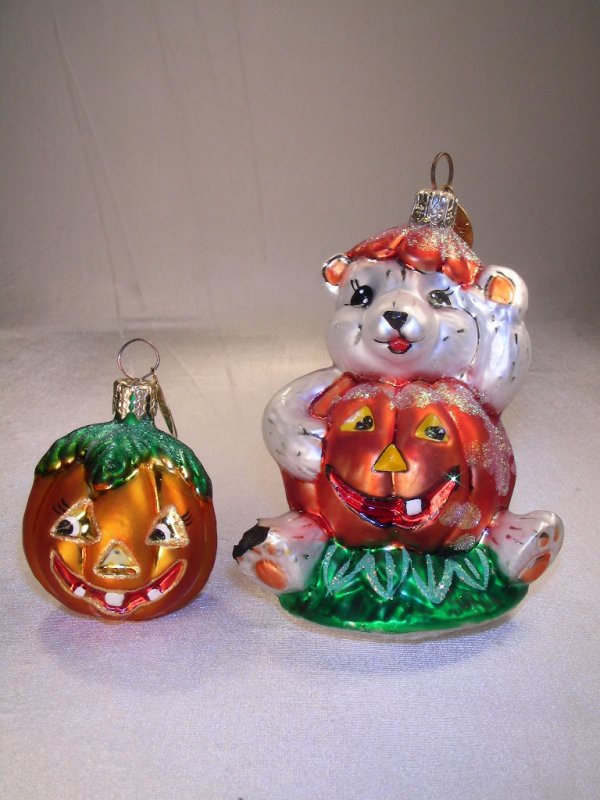2 PC CHRISTOPHER RADKO HALLOWEEN ORNAMENTS PUMPKIN