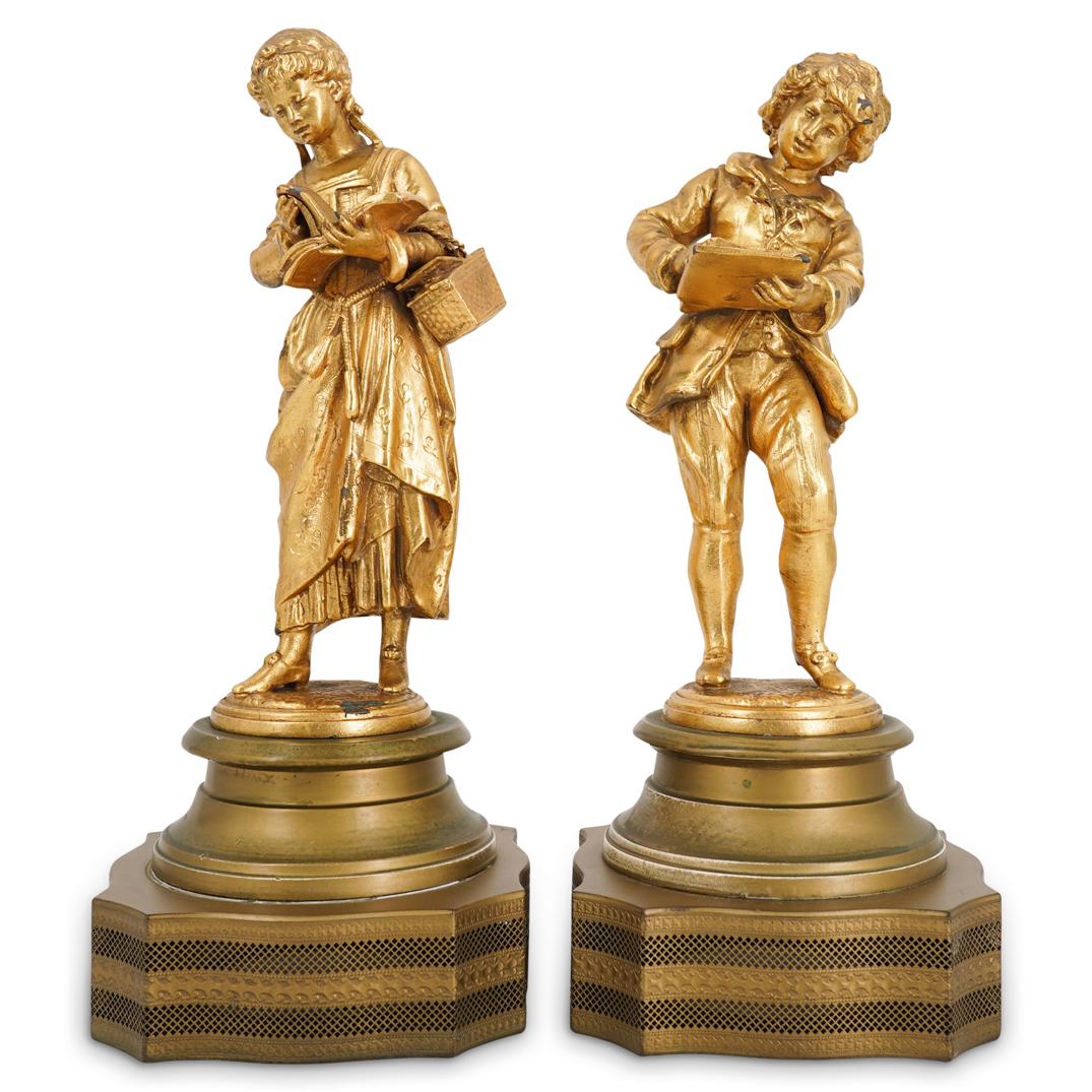 (2 Pc) Gilt Bronze Student Sculptures