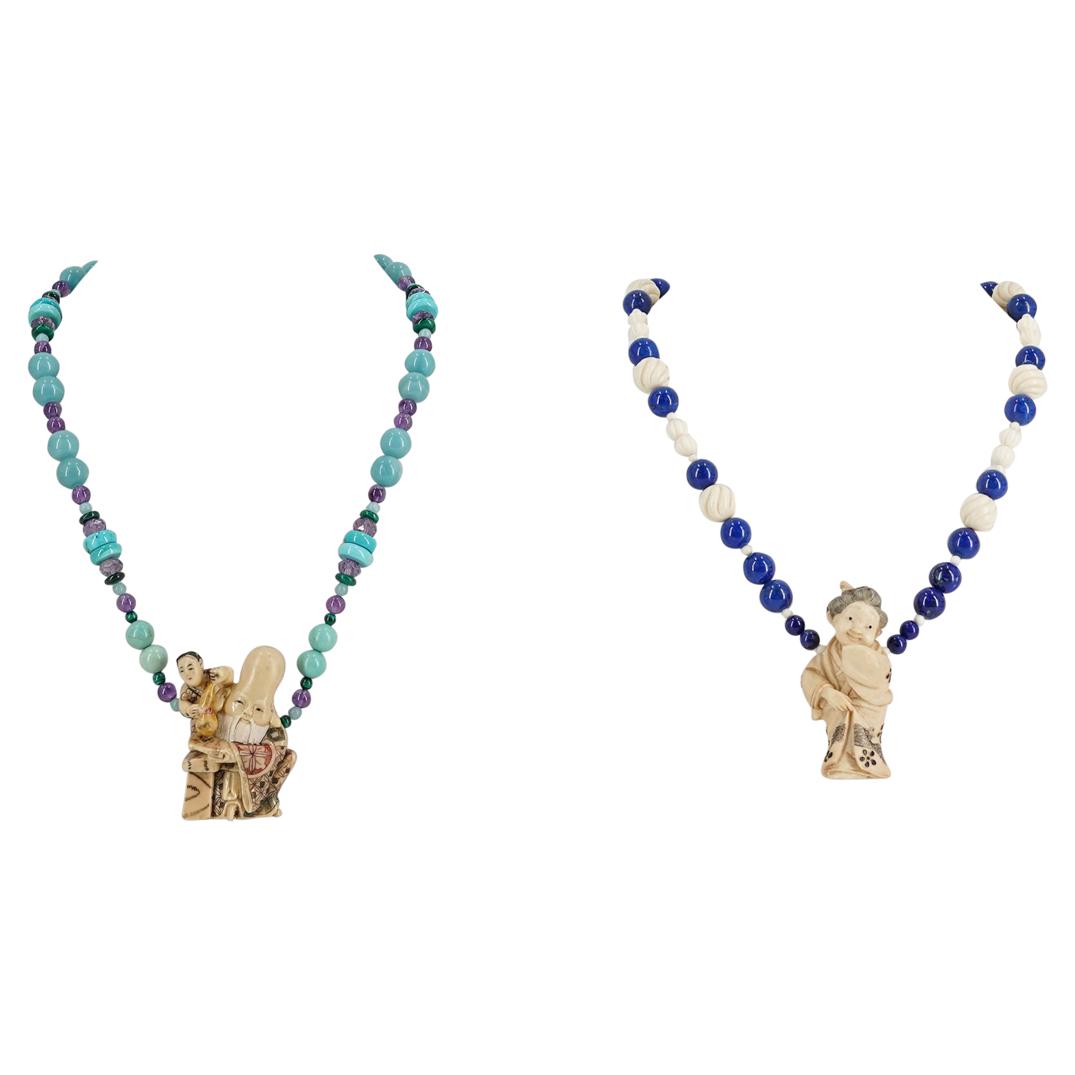 (2 Pc) Resin Beaded Netsuke Necklaces
