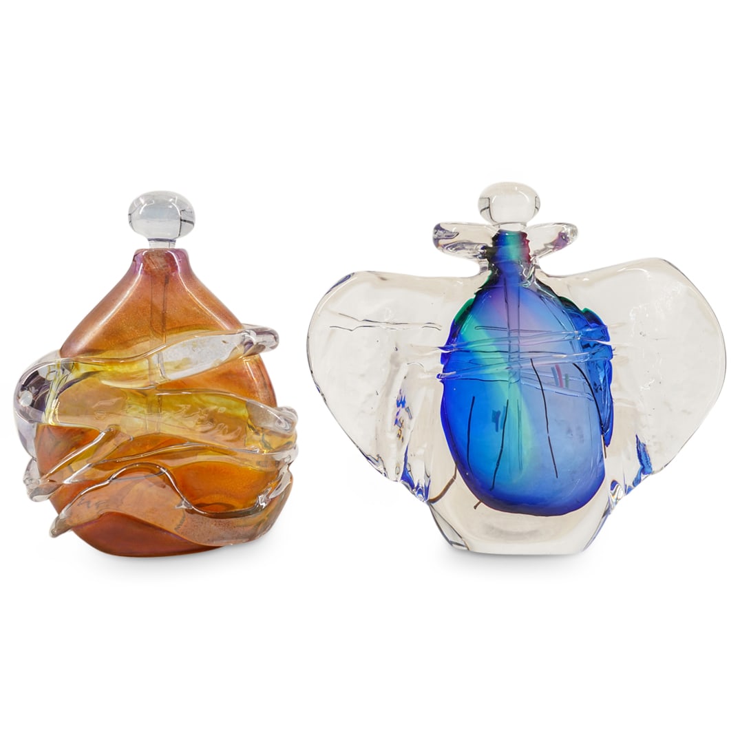(2 Pc) Signed Art Glass Perfume Bottles
