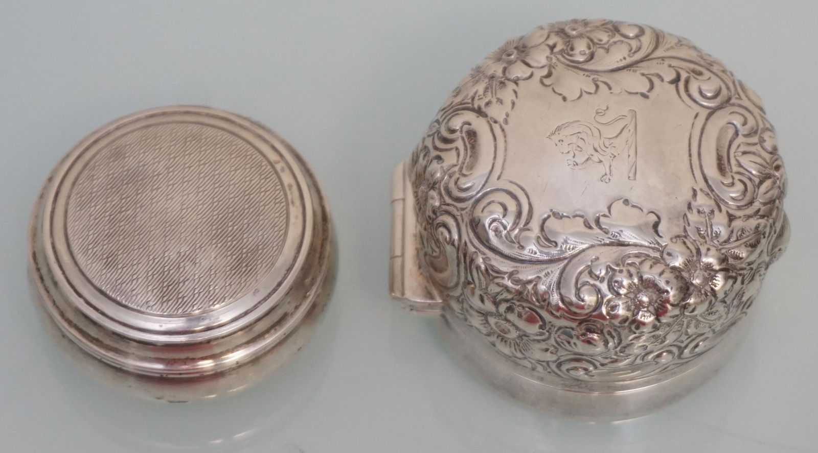 Lot 2 Signed Vintage Sterling Silver LidsMar 18, 2026Two Leonard and WM Rogers Silverplated Serving Covered Dish and Tray2 days LeftArt Nouveau Silver Plated Pill Box by Armand Frenais French c.1900ANTIQUE STERLING SILVER & CUT GLASS DRESSER BOXES1 day LeftTwo Silver, Enamel & Hand-Painted Pill Boxes with CatsMar 14, 20263 Sterling Snuff BoxesMar 14, 20262 Georgian Sterling Nutmeg GratersMar 14, 20266 Miniature Silver Boxes & VinaigretteMar 14, 20263 Miniature Sterling BoxesMar 14, 2026Silverplate Vanity Powder Jar and Jewelry BoxArt Nouveau Shreve & Co Sterling Silver Box with Crown and Floral DesignMar 16, 2026Two French Lady's Items, 19th c., Pill Box- H.- 3/4 in., W.- 2 5/8 in., D.- 2 in. (2 Pcs.)Mar 26, 2026(2) ENGRAVED TOBACCO / SNUFF BOXESMar 15, 20267 Metal BoxesMar 14, 2026Vintage Miller Bros. English Sterling Silver Pill BoxMar 14, 20265 Miniature Silver BoxesMar 14, 2026