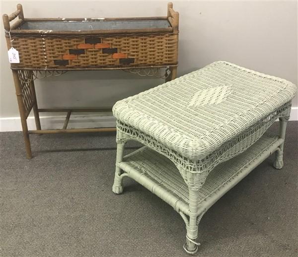 Antique Wicker Plant Stand with Galvanized Planter 28x13.5x35