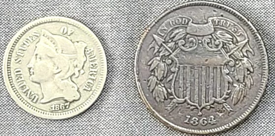 2 pcs. 1864 Two-Cent & 1867 Three-Cent Nickle