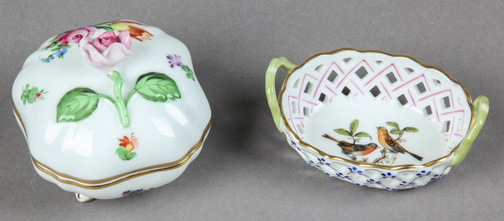 Herend Hand Painted Butter Dish and Box Set 2 Pieces