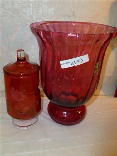2 piece cranberry and ruby red glass