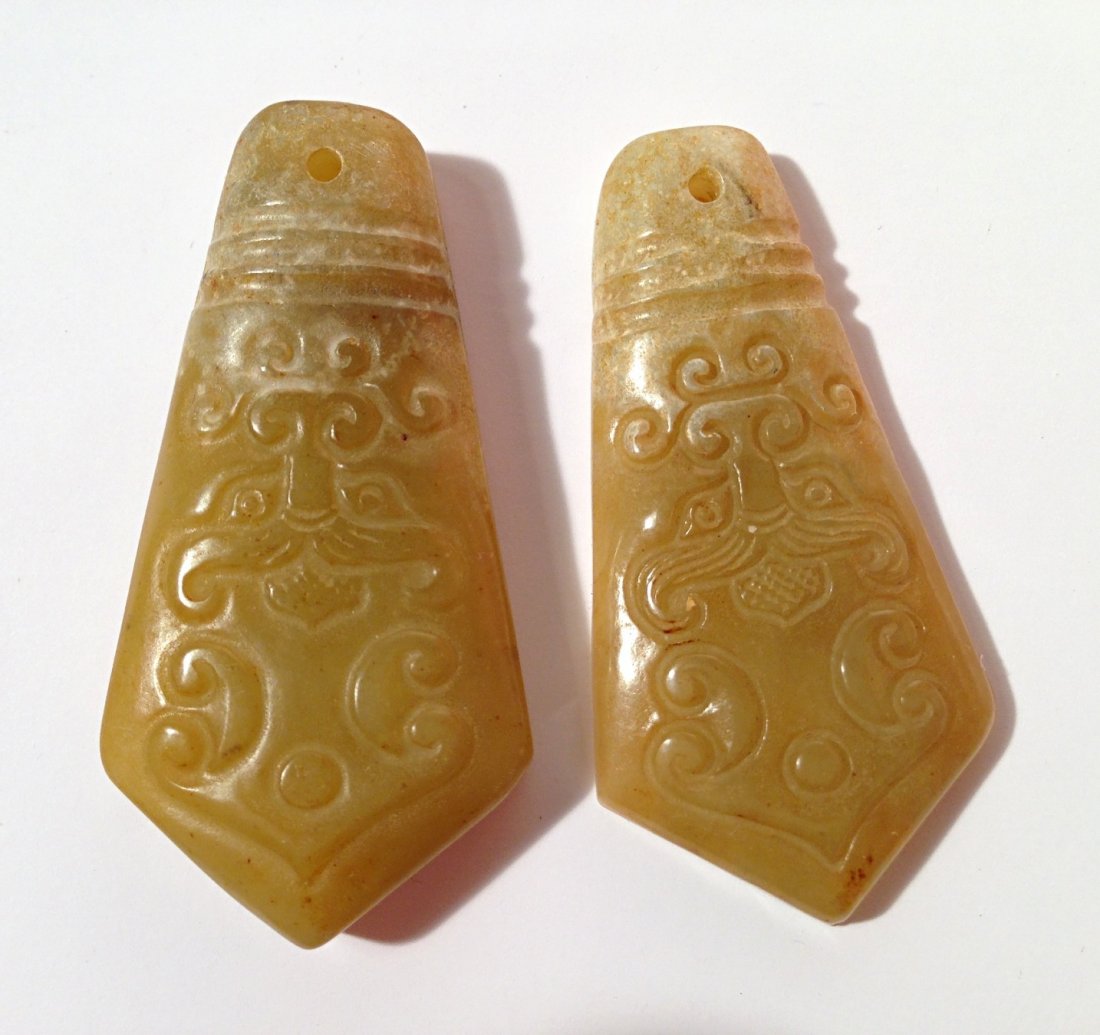 Two Antique Chinese Jade Carvings with Pendant