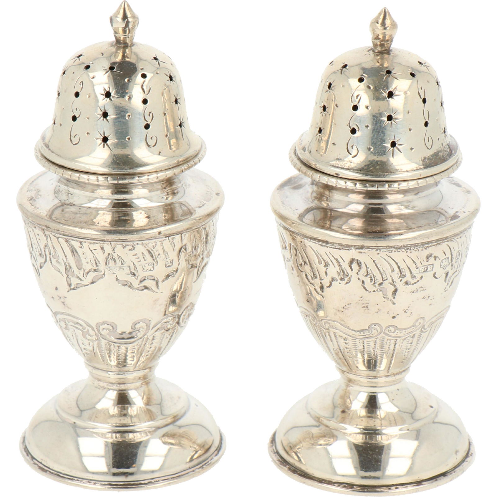 Lot of Georgian sterling silver. 1) Pair of shakers. John Crouch and Thomas Hannam. London, 1796.Mar 01, 2026Pair of Sterling Silver Shakers "George II" 1 of 2Mar 27, 2026Pair of Sterling Silver Shakers "George II" 1 of 2Mar 27, 20266.8 troy ounces .925 Sterling Silver Salt and Pepper Shakers with Glass InsertsMar 02, 2026A pair of antique English sterling silver candlesticks, BARKER BROTHERS, 1898Mar 15, 2026Pair Queen Anne English Silver Casters, Joseph Ward4 days LeftPair Of Sterling Silver Salt Shakers6 days LeftPair of decorative candlesticks. EPNS. Silver-plated. England.Feb 28, 2026George III English Silver Creamer and Lidded Sugar, Peter and Ann Batman4 days LeftPair Scottish Silver Candlesticks, James Mitchellsone4 days LeftCased George III Sterling Silver Tea Caddy SetMar 16, 2026Sterling Salt, Pepper Shakers c1930 M Fred Hirsch Hollowware2 days LeftGeorg Jensen Sterling Silver Salt & Pepper Shaker Pair2 days LeftPair of small trumpet vases. 925 silver. Birmingham. England.Feb 28, 2026(2) EARLY BRITISH SHAKERS2 days Left(2) CAMBODIAN SILVER-TONE METAL CHASED TRUMPET VASES2 days Left