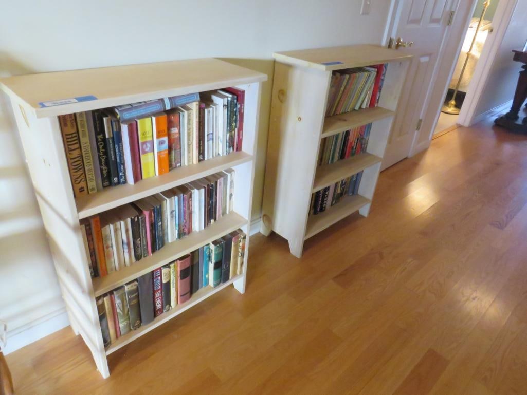 Sold2 English Pine Open Bookshelves c.1940's2 English Pine Open Bookshelves c.1940's-50's - 39 in tall x 48 x 8, Interior shelf width is 44 and the depth is 7 inchesSee Sold Price