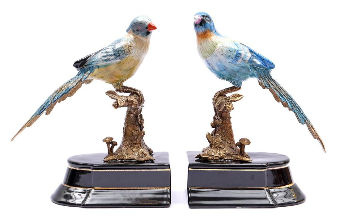 2 porcelain polychrome colored birds