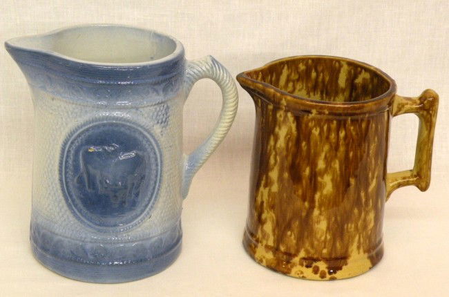 2 pottery milk pitchers