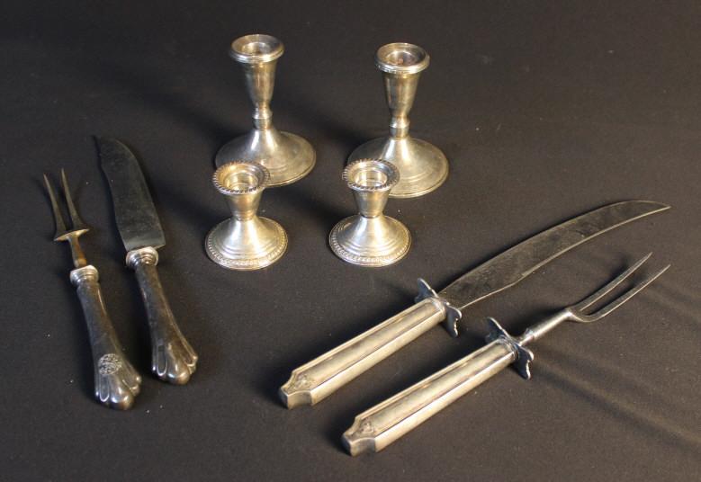 (2) PR WEIGHTED CANDLESTICKS & (2) CARVING SETS