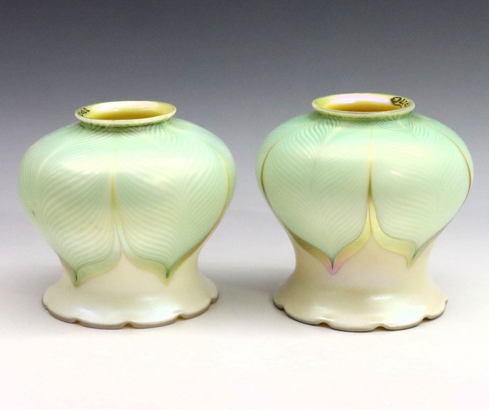 Pair Of Signed Quezal Art Glass Pearl & Gold Iridescent Lamp Shades With Green Pulled FeathersKraft Auction Service4.4(845)$110(2 bids)4 days Left