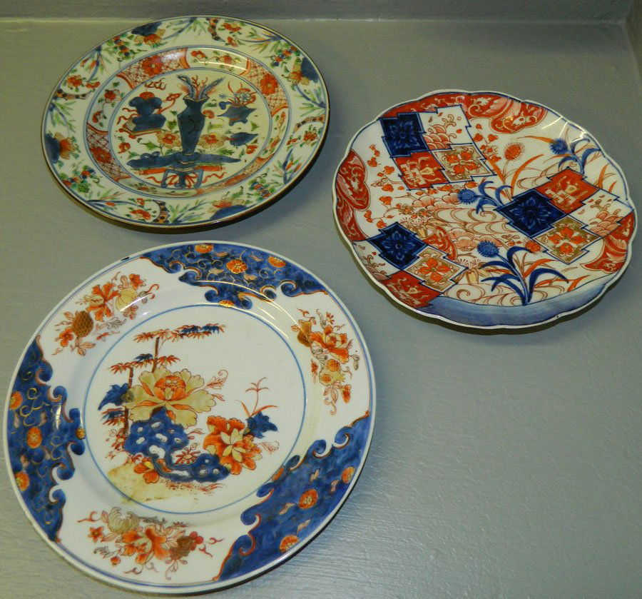 2 restored export colored plates & 1 Imari plate.