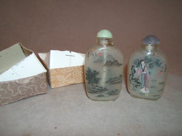 2 REVERSE PAINTED PEKING GLASS SNUFF BOTTLES