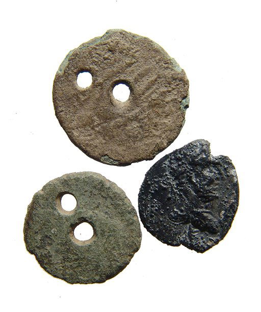 2 Roman coins turned into button, a bulla