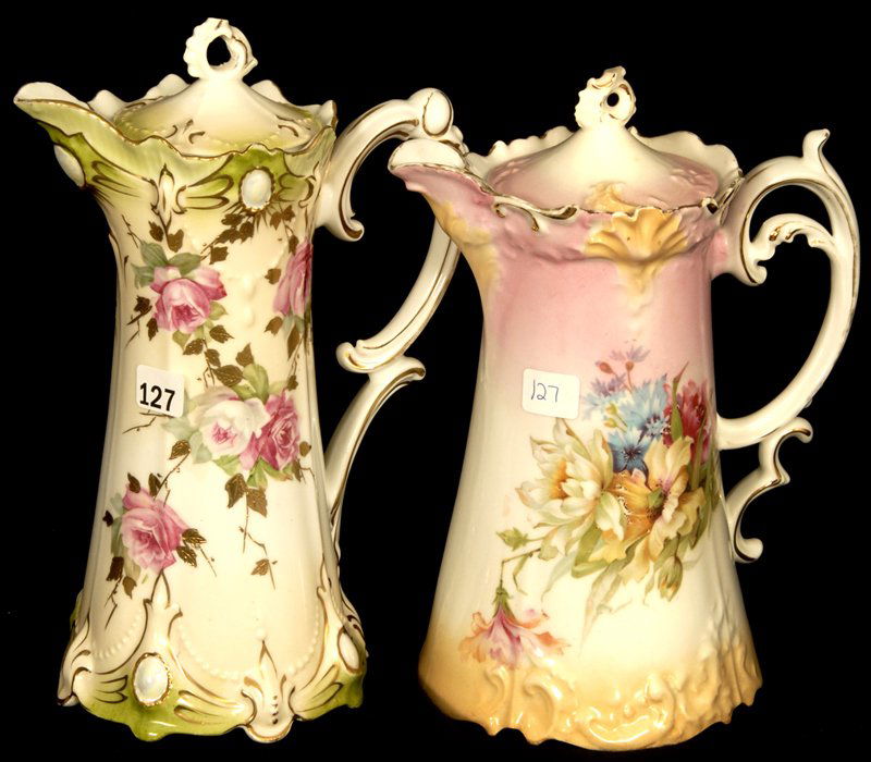 (2) R.S. PRUSSIA CHOCOLATE POTS