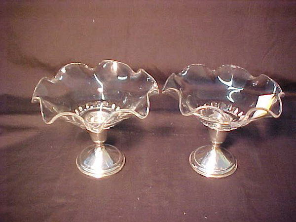 2 RUFFLED GLASS COMPOTES STERLING SILVER