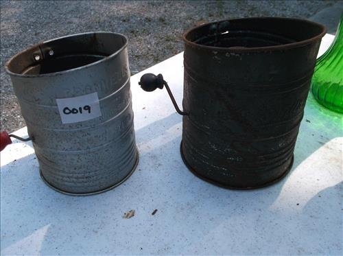 2 RUSTY BROMWELL SIFTERS 6 3/8"H