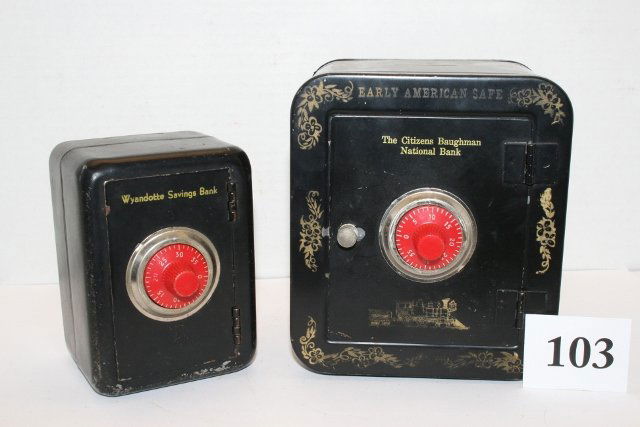 (2) Cast Iron National Safe BanksMar 01, 2026Cast Iron National Safe and Security Safe Deposit Still BanksMar 01, 2026(4) Cast Iron Columbus Safe BanksMar 01, 2026Mudd Mfg. Co. Peoples Home Bank and Nicol & Co. No. 358 State Savings BankMar 01, 2026Cast Iron Safe Deposit Banks and State Safe Still BankMar 01, 2026(2) Cast Iron Security Safe Home Deposit Double Dial Still BanksMar 01, 2026(2) Keyless Lock Co. "The Keyless Savings Bank"Mar 01, 2026(2) Nicol & Co. No. 12 White City Puzzle Safe BanksMar 01, 2026(3) Time Lock Safe Tin Bank's with Dog GraphicsMar 01, 2026(2) Cast Iron National Safe Banks & (1) Bank of Commerce Still BankMar 01, 2026(9) Modern Miniature Safe BanksMar 01, 2026Salesman sample McCaskey RegisterMar 28, 2026(11) Miniature Safe Banks & President Safe BanksMar 01, 2026(2) Kenton Brand Cast Iron Still Safe BanksMar 01, 2026Cast Iron Coin Deposit Bank and Diamond Safe Still BanksMar 01, 2026(2) Cast Iron National Safe Deposit Still BanksMar 01, 2026