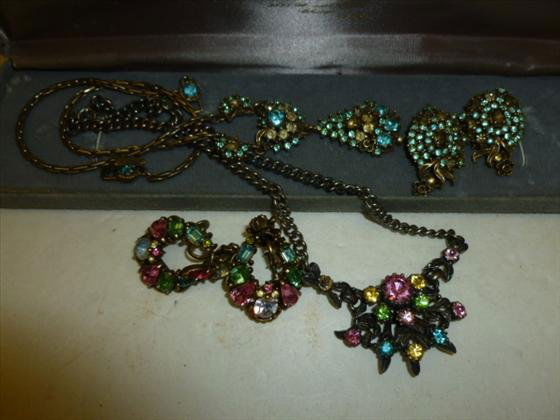 Vintage Jewelry Group Aurora Borealis Rhinestone Necklace Earrings Gold Tone Chain NecklaceGolden Age Jewelry Auctions4.5(57)$34(5 bids)Feb 26, 2026