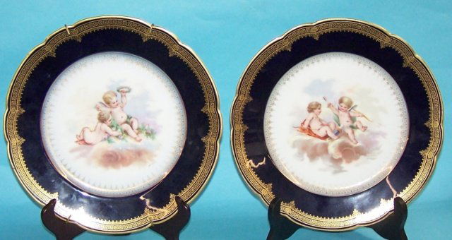 Sold2 pc Lot Signed Sevres Porcelain Cobalt Gold Border PlatesTwo beautiful signed Sevres porcelain cobalt & gold border plates. Each is a beautiful example. One with cows. One with sheep. Each measures 9 3/4" diameter.See Sold Price