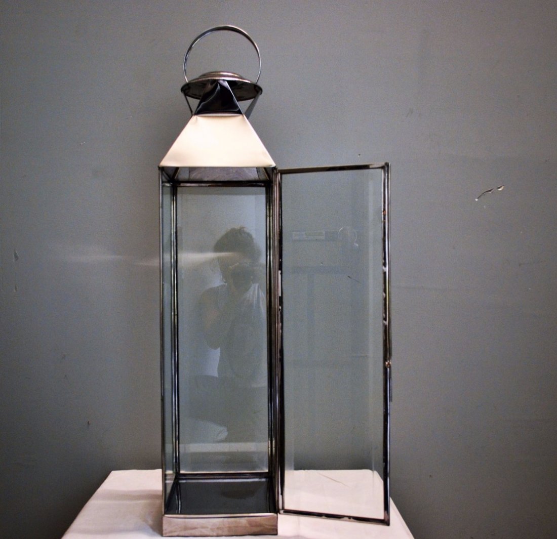 (2) Shiny metal candle lanterns