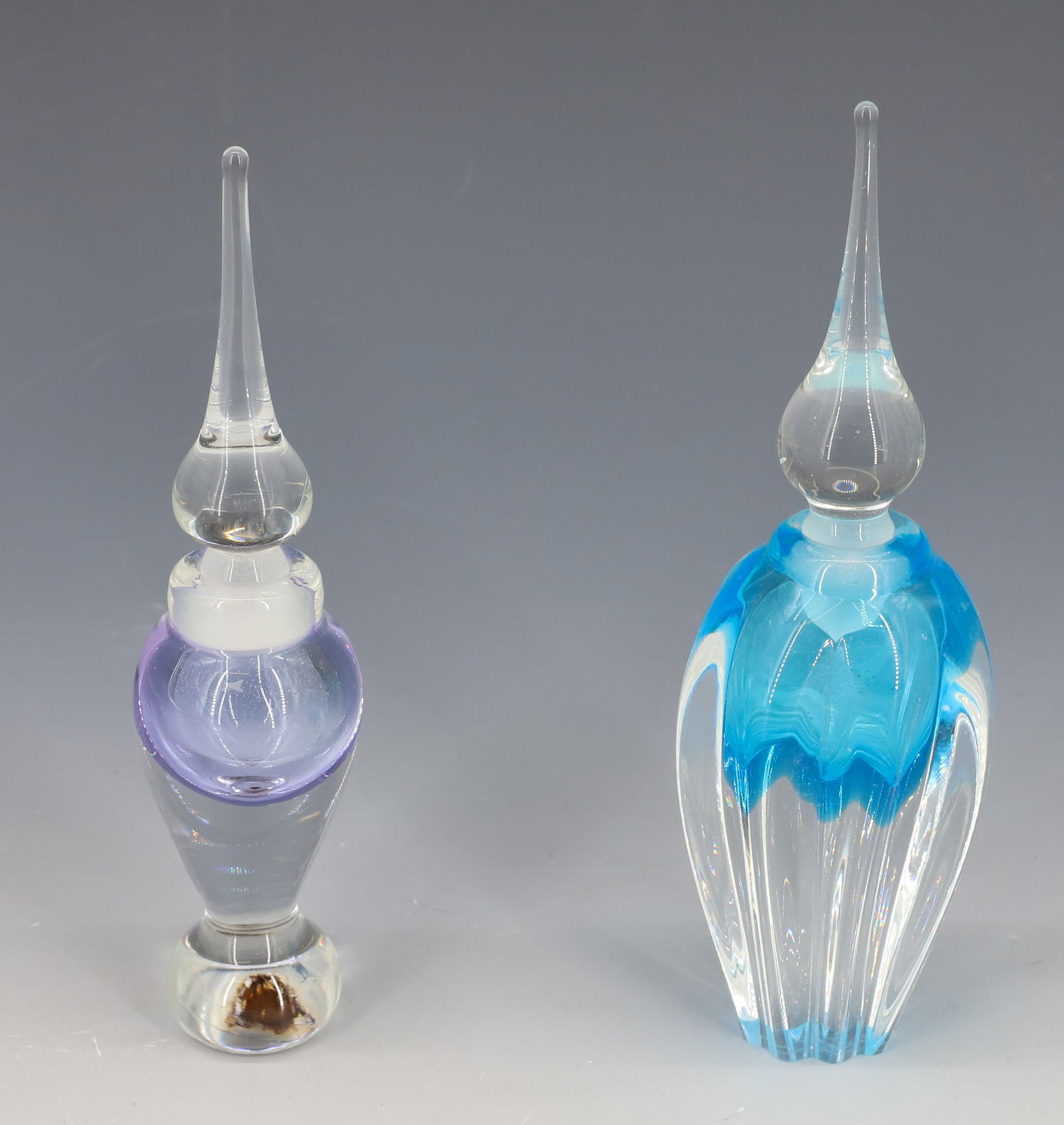 (2) SIGNED ART GLASS PERFUME BOTTLES