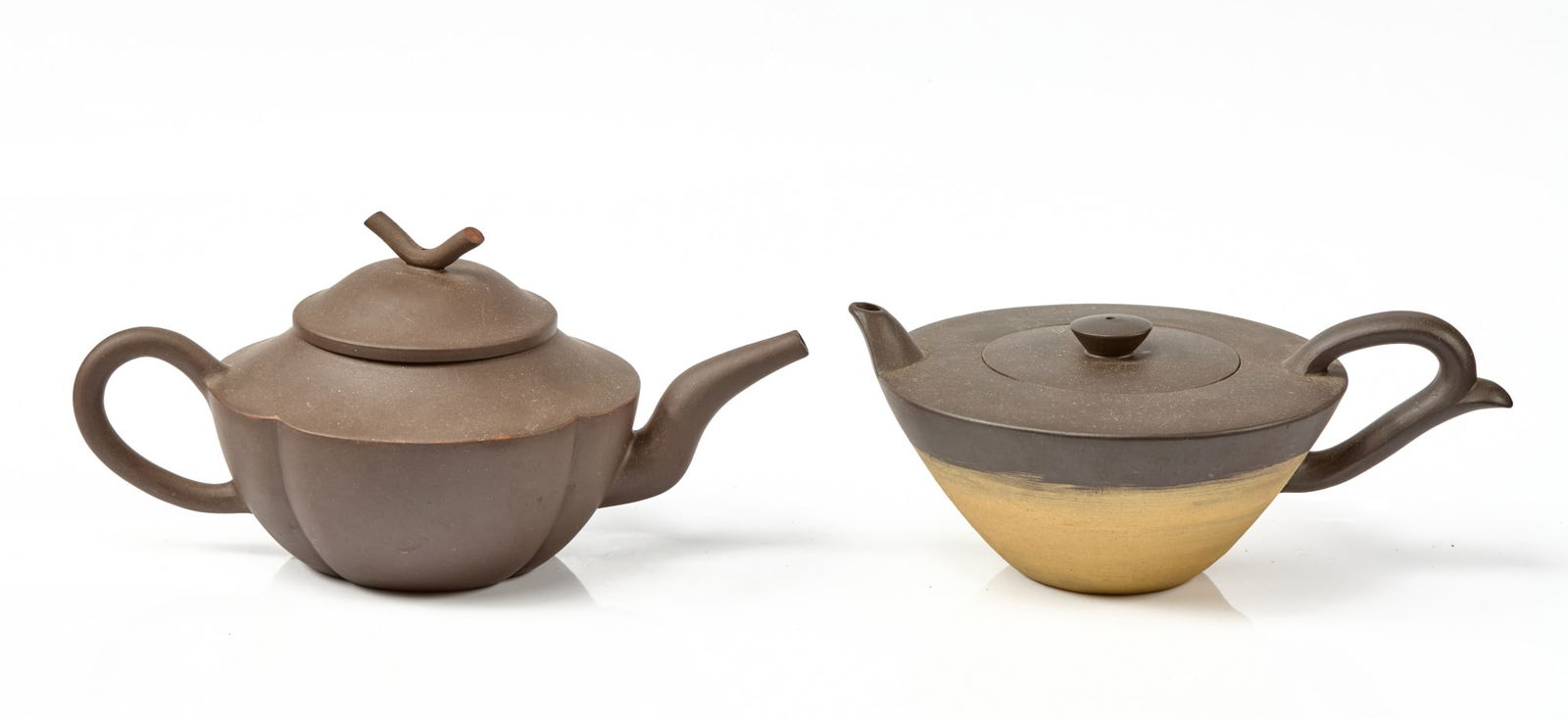 (2) SIGNED CHINESE YIXING CLAY TEAPOTS