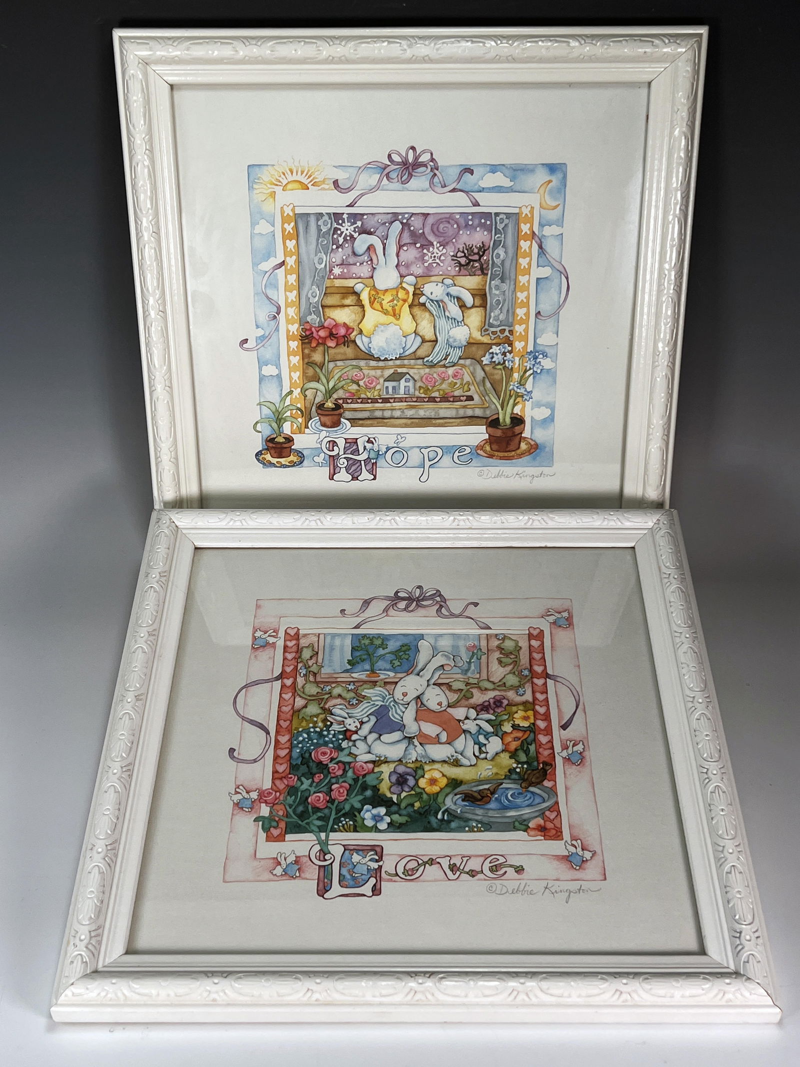 2 SIGNED DEBBIE KINGSTON RABBIT CHILDRENS PRINTS
