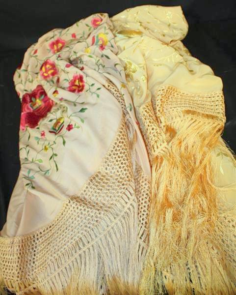 Antique 1920s Ivory Floral Embroidered Piano Shawl
