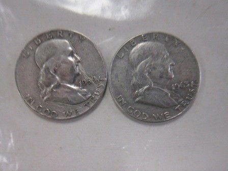 2 Silver half dollars1959-1963 Franklin
