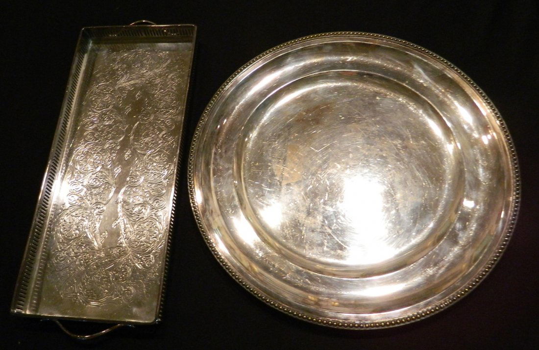 Lot of 2 Silverplate Vase and Tray2 days LeftEstate lot STERLING SILVER, from Virginia estate, includes (6) STIEF small dishes, bowls, plate,3 days LeftLot of 2 Silverplated Trays5 days LeftLot of 2 Silverplated Plates3 days LeftSet of (3) Silver Plate & Tin Platters7 days LeftWilcox and Gorham Silver Plate Serving Pieces Including Compote and Oval TrayFeb 12, 2026Vintage Silverplate Relish Tray & Pedestal Bowl.752 Lots Away2 Vintage Wendell August & Federal Aluminum TraysFeb 19, 2026Two Silver Plated Trays3 days Left2 Vintage Footed Oval Kent Silversmith Silver Plated Trays BJul 24, 2025Two Sterling Silver Bowls and TraysFeb 21, 2026Group of Five Assorted Silver Plated Serving Trays2 days LeftVintage International Silver Co Silverplate 10" Dish or TraySolid Sterling Silver Round Tray Marked Wallace #4130-34 days LeftVintage Silver Plated Dishes7 days Left4pc Gorham, Oneida and Other Silver-Plated and Gilt Serving Trays5 days Left