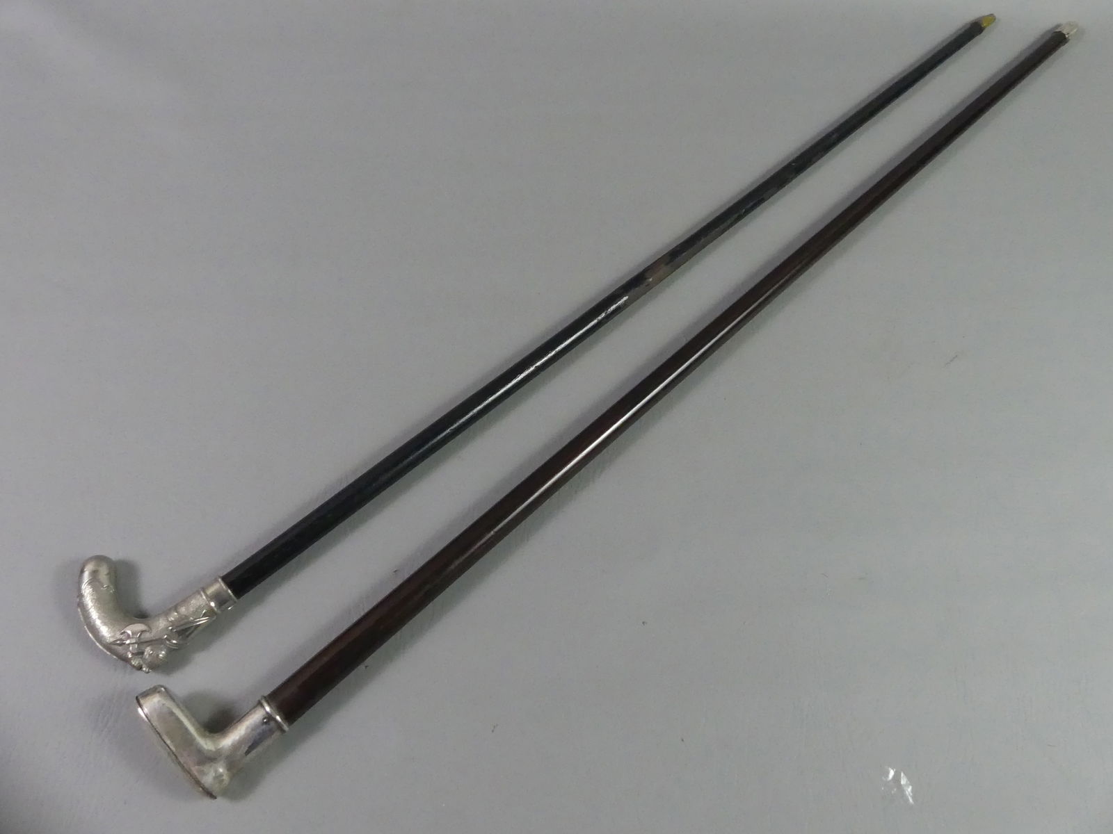 2 SILVER PLATED CANES - 1 W/KNIGHT