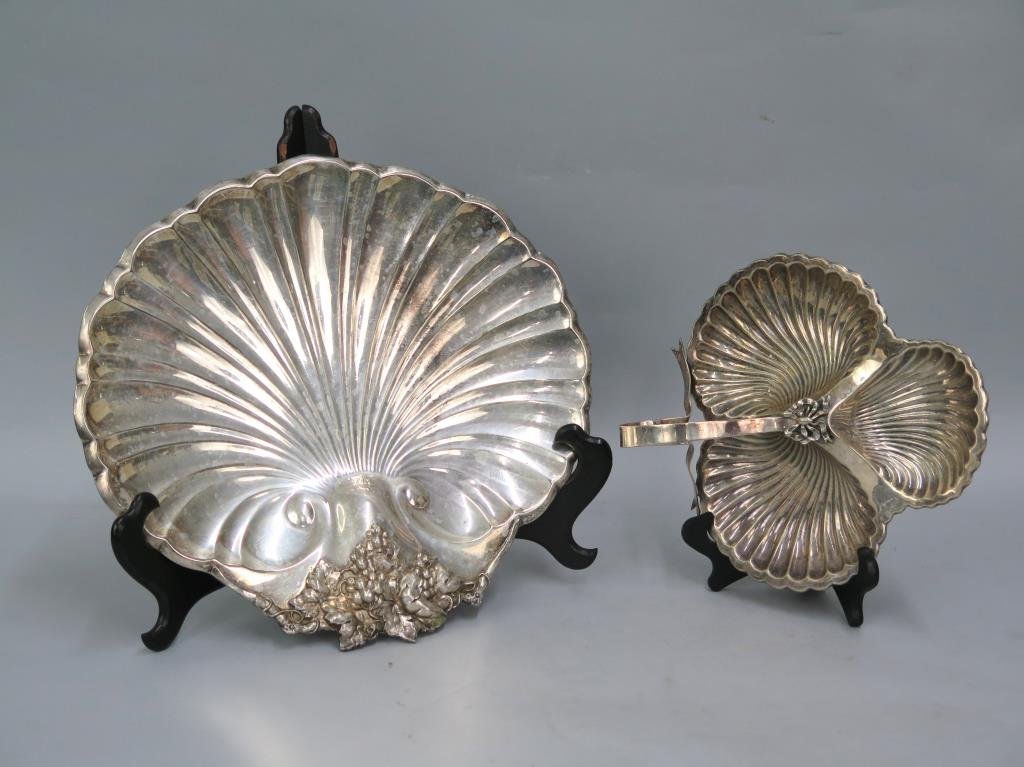 Sold2 Silverplated Serving Trays, Salver, & Shell Dish2 Silverplated Serving Trays, Salver, & Shell Dish. Up to 27" x 11 1/2" ALL DESCRIPTIONS AND ANY CONDITION STATEMENT GIVEN BY LANGSTON AUCTION GALLERY ARE STRICTLY OPINIONS AND LANGSTON'S SHALL HAVE NSee Sold Price