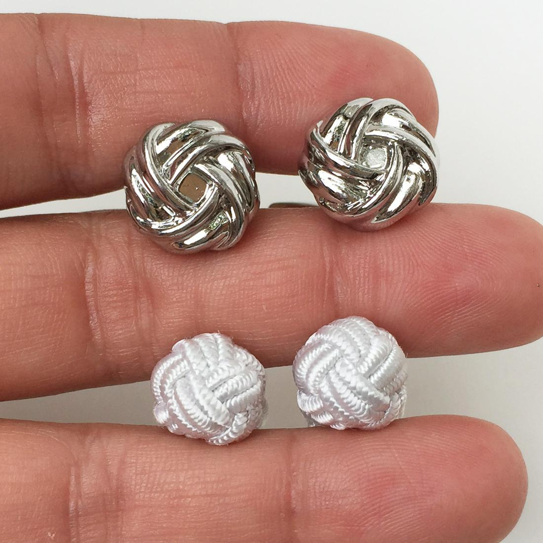 2 Silver tone white knit Knot shape cufflinks set