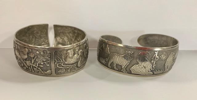2 Silver Type Bangle Bracelets 2 Silver Type Bangle