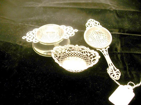 2 Silverplated strainers one with holder and a si