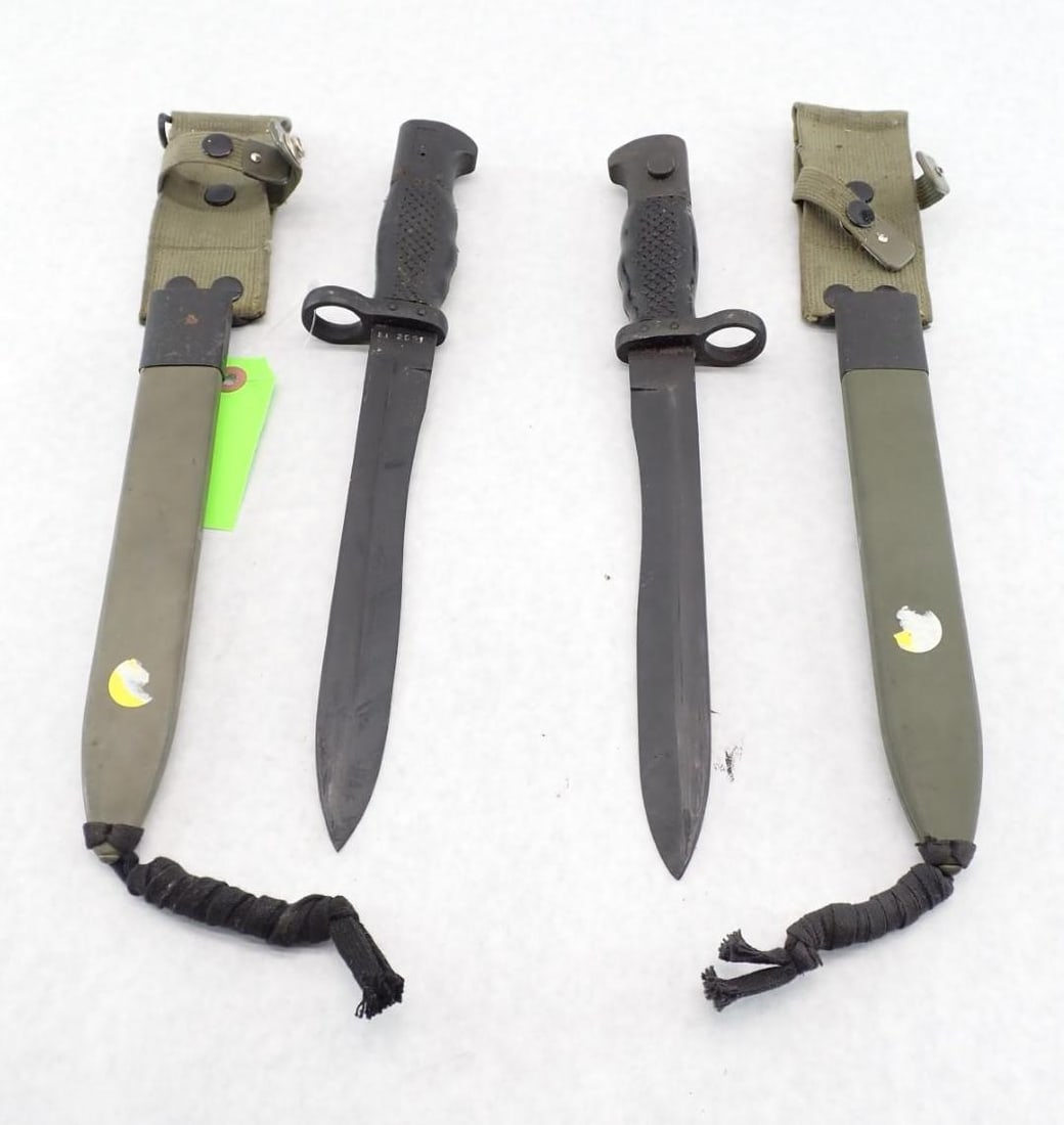 Lot Of Three BayonetsLot Of Five Bayonets With Scabbards Including German, Swiss, Czech, And YugoslavianLOT OF ASSORTED BRITISH MILITARY BAYONETS.Feb 26, 20264PC LOT OF TOLEDO STYLE SWORDSMar 07, 2026LOT OF ASSORTED FOREIGN MILITARY RIFLE BAYONETS.Feb 26, 2026LOT OF 4 GERMAN WWI & WWII BAYONETS.Feb 26, 2026LOT OF 8 FOREIGN MILITARY RIFLE BAYONETS.Feb 26, 2026Lot of 5 Vintage Bayonets With ScabbardsLOT OF 3: THIRD REICH MINIATURE SS DAGGERS.Feb 25, 2026LOT OF 6 SWEDISH M1896 MAUSER BAYONETS WITHFeb 26, 2026LOT OF 6 U.S. M4, M5A1, & M7 BAYONETS.Feb 26, 2026Lot of 4 Mid-19th Century Franch Bayonets and Vintage Hunting Knives with Leather SheathsFeb 28, 2026LOT OF 4: C. 1960S FRENCH AND SPANISH STILETTO SWITCHBLADES.Feb 25, 2026LOT OF 2: EARLY GERMAN MADE WILD BOAR FOLDING BLADE HUNTING KNIVES STAG HANDLES.Feb 25, 2026Lot Of 5 Military Knives And Bayonets With Scabbard And SheathsLot Of 6 Various Bayonets With Scabbards And Sheaths And One Curved Blade Knife